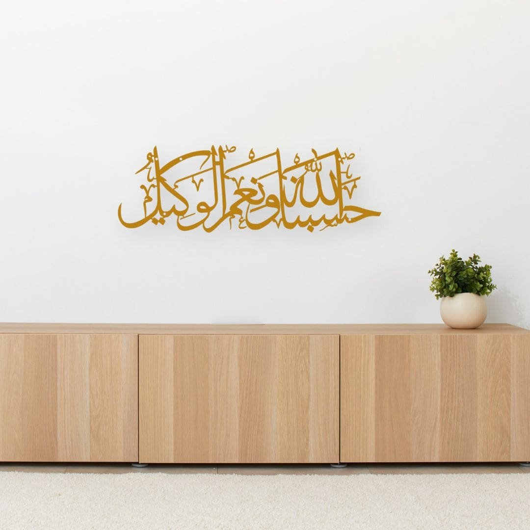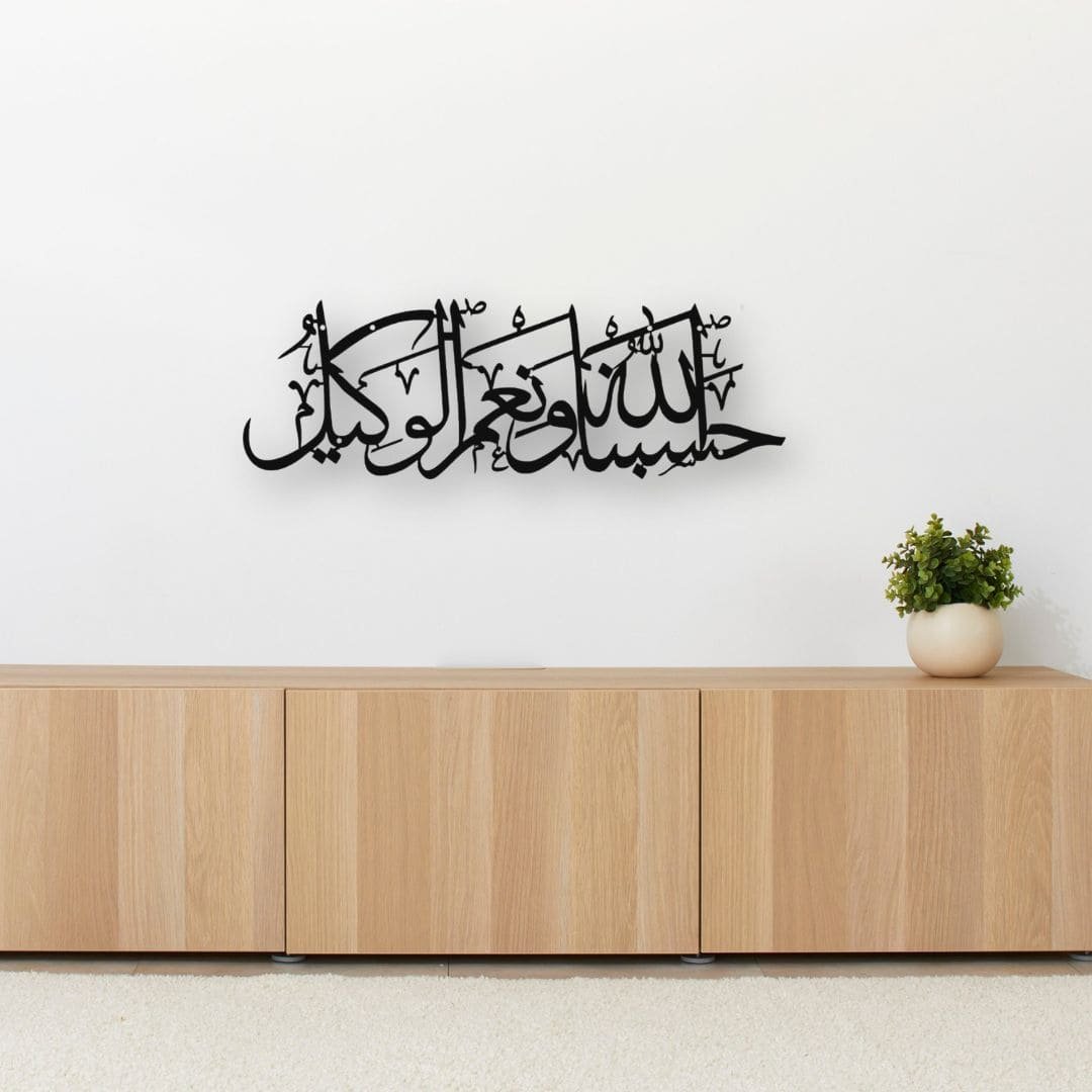 This powerful phrase is a reminder of trust, faith, and surrender. Our Hasbunallahu Wani’mal Wakeel metal wall art is thoughtfully designed to bring calm and reassurance into your space.