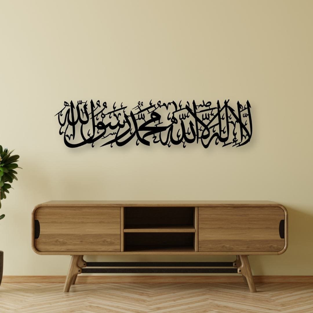 Kalema metal wall art crafted in premium metal. A powerful declaration of faith in elegant Islamic décor.