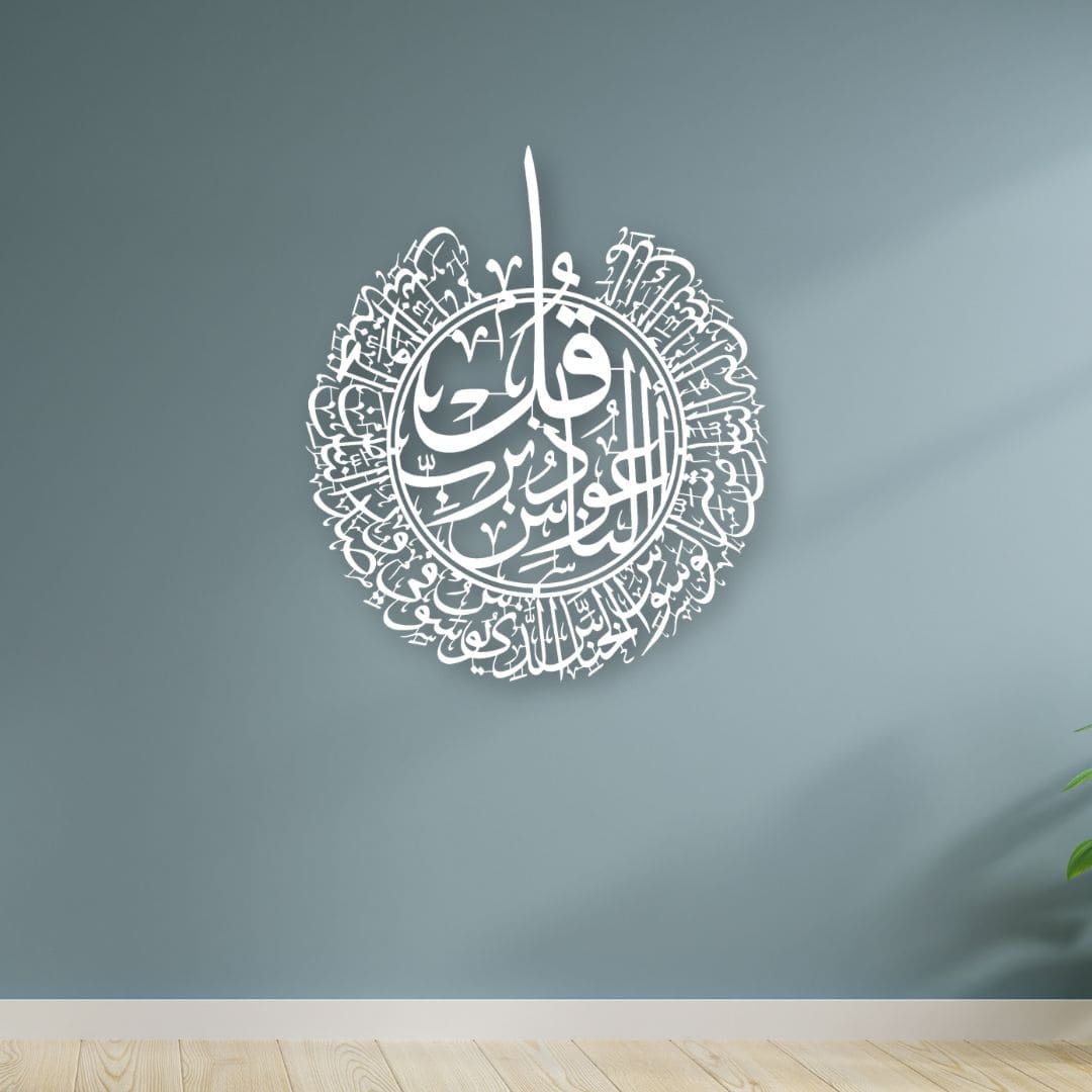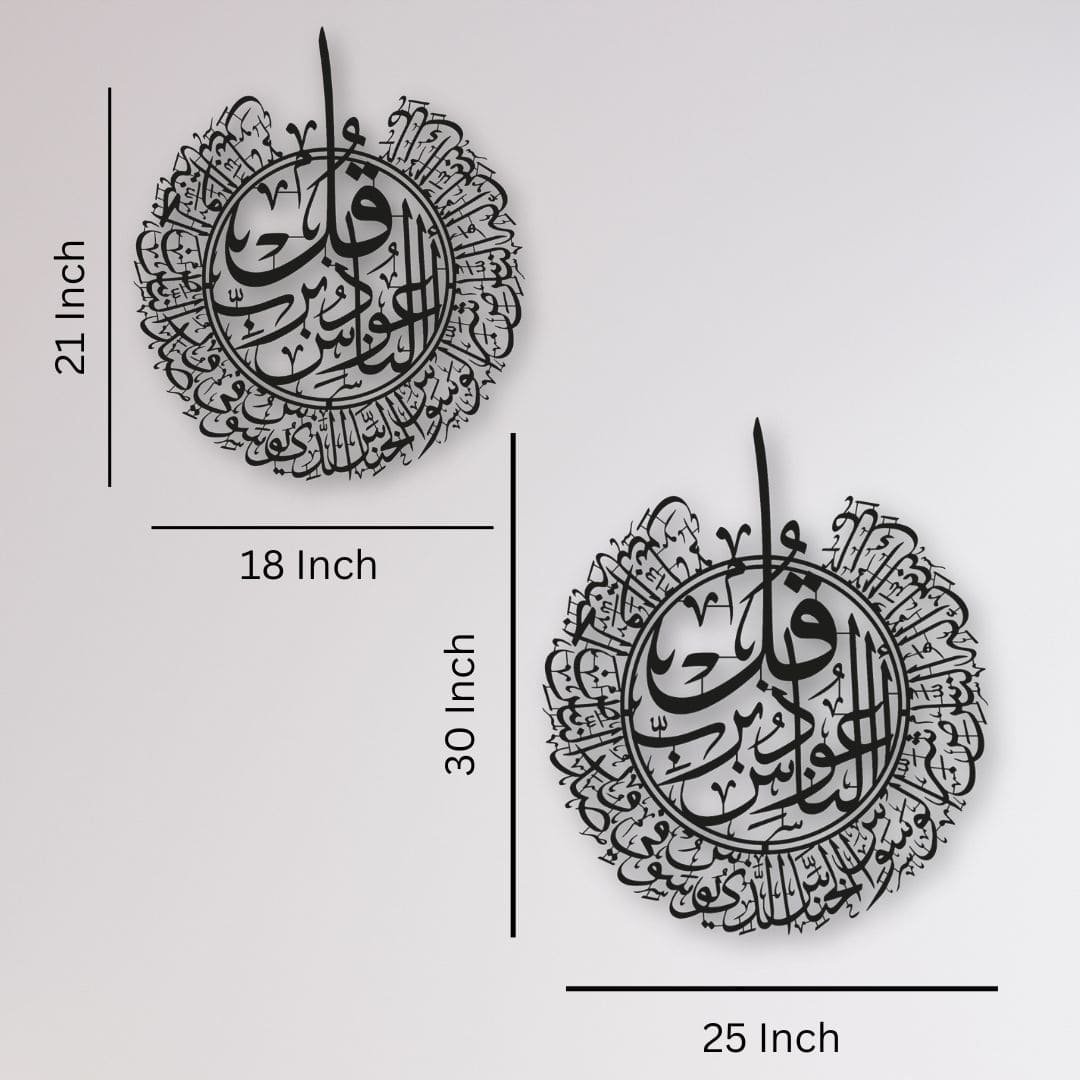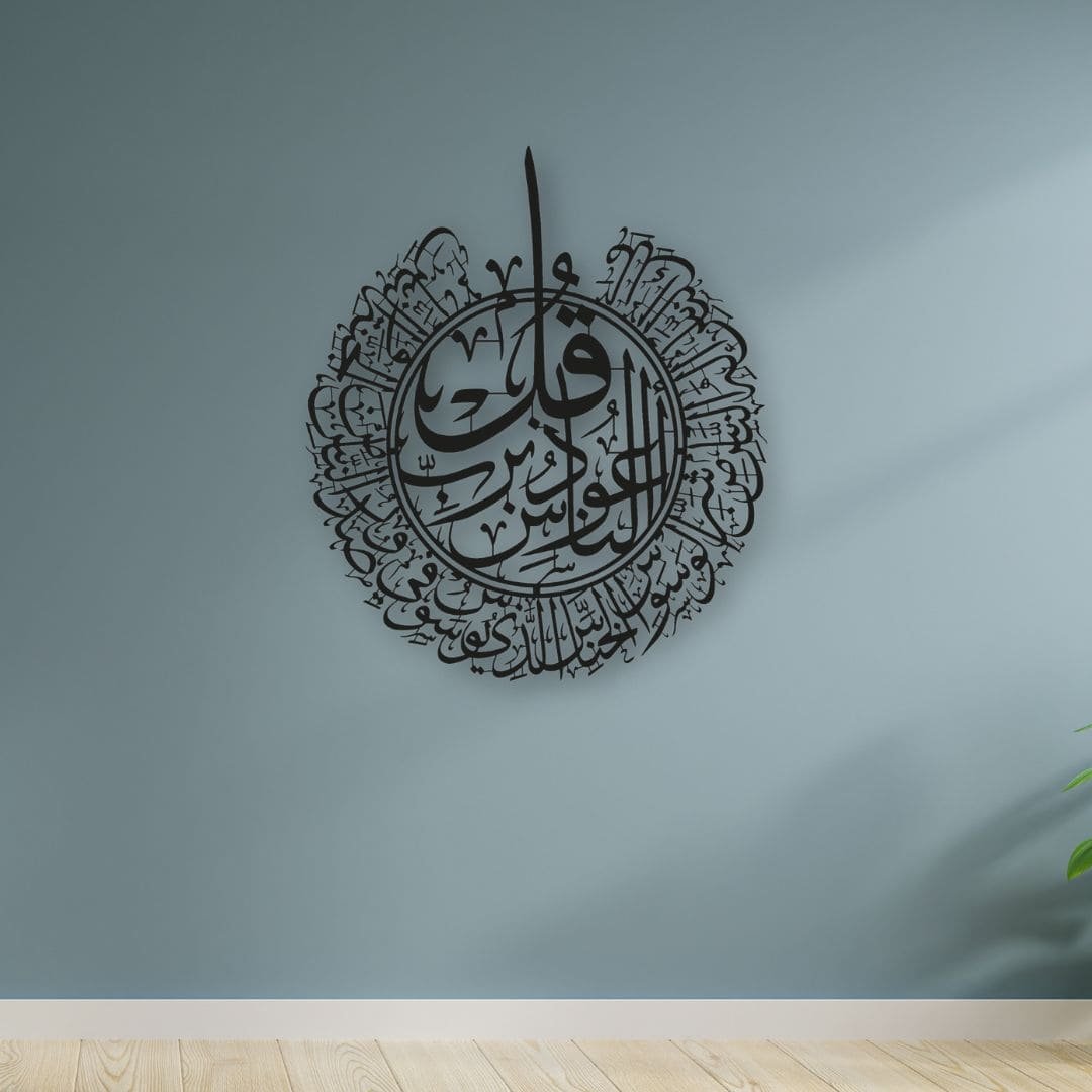 SKU: IWA-SN Category: Islamic Metal arts Tags: Islamic calligraphy art, Islamic protection decor, Muslim home decor, Quran wall art metal, Surah Naas wall art Brand: Dekorra